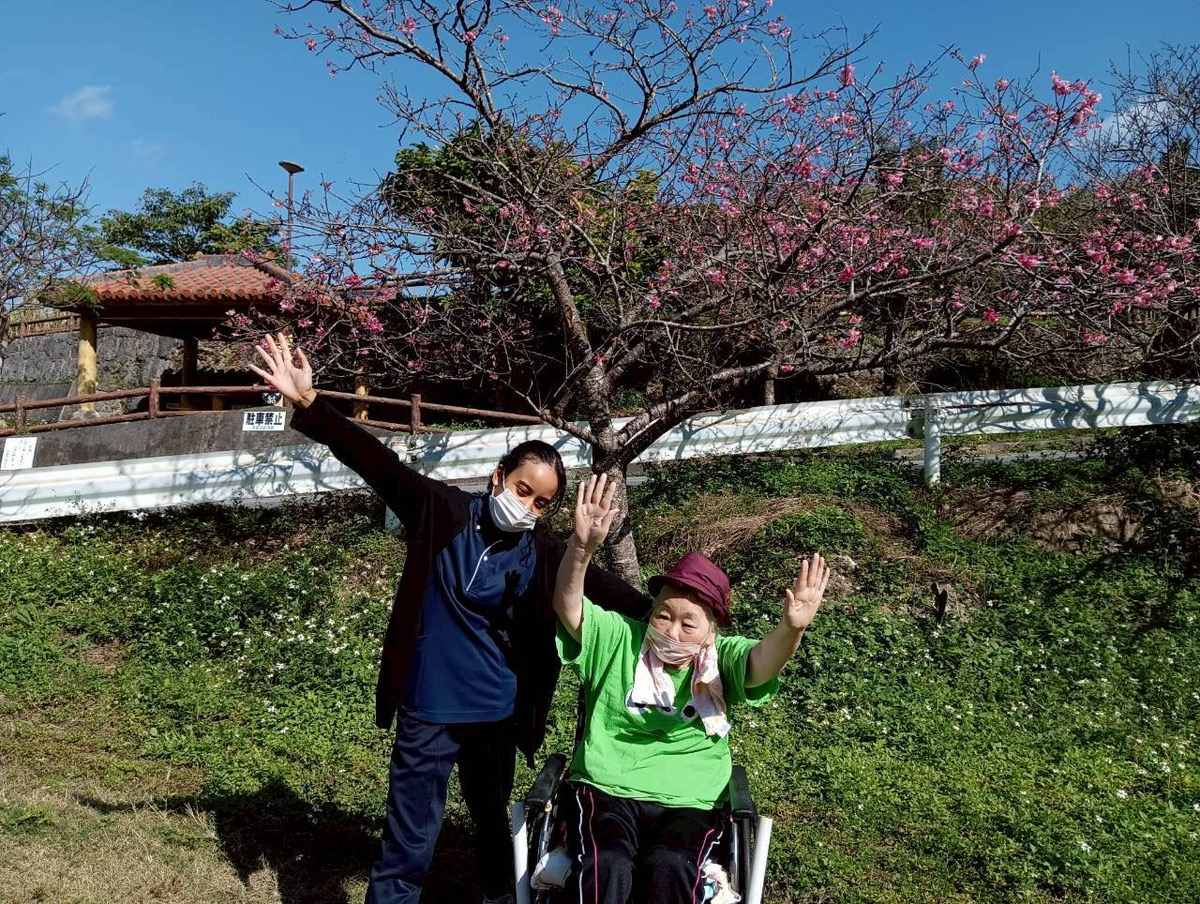 先日バスに乗って八重瀬公園にお花見に行きました~♬