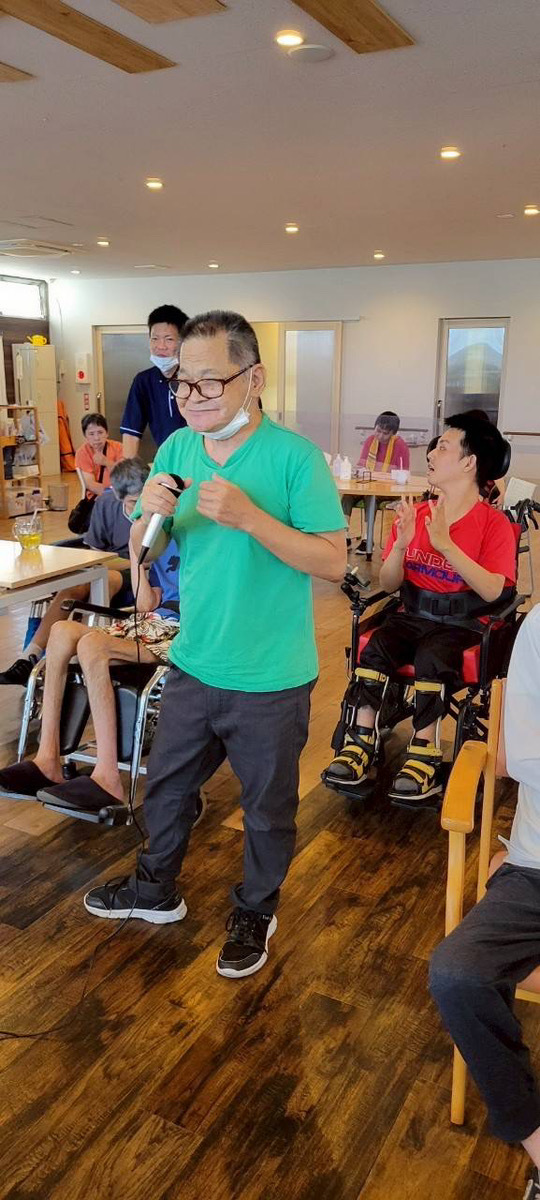 当施設の入浴は同性のスタッフが介助し、入浴専用のストレッチャーも備えているため、車椅子をご利用の方も安全に入浴いただけます。介助が必要な方にはスタッフが丁寧にサポートいたします。 機能訓練では、歩行訓練や脳トレ、関節可動域訓練(ROM訓練)、音楽体操を通じて、リフレッシュしながら心身の健康をサポートします。